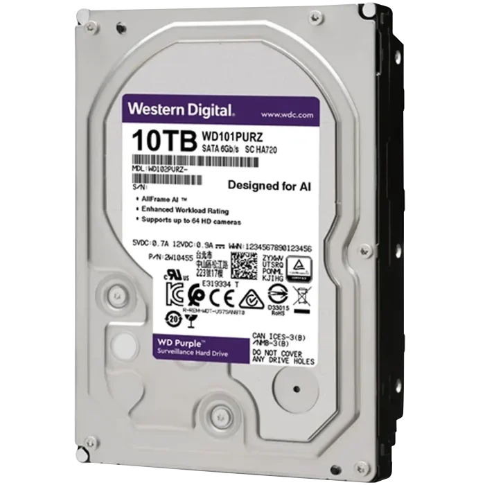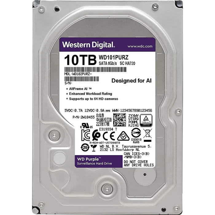 Western Digital WD101PURP Purple Surveillance 256MB Cache SATA III 10TB Internal HDD