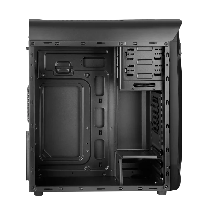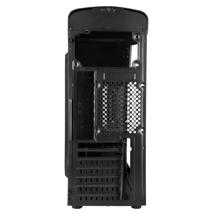 جریان هوا توسط ترکیبی از ویژگیها بهینه شده است. پنل جلویی دارای دریچههای تهویه قرار گرفته شده استراتژیک در قسمت پایینی است، در حالی که سوراخهای بزرگ و باز در سقف به خروج هوای گرم به طور موثر کمک میکند. یک عنصر طراحی متفکرانه شامل برآمدگی روی فن پشتی است که به جلوگیری از تجمع گرد و غبار و بهبود گردش هوا کمک می کند.