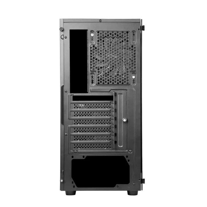 به علاوه در ساختار این محصول از پنل شیشهای در قسمت کناری بهره گرفته شده است که سبب ایجاد جذابیت هر چه بیشتر آن میشود. این پنل به واسطه شیشه حرارت دیده یا همان Tempered Glass طراحی شده و جزئیات داخل دستگاه در کنار نورپردازی RGB اطراف فنها را به نحوی زیبا نمایان میکند.