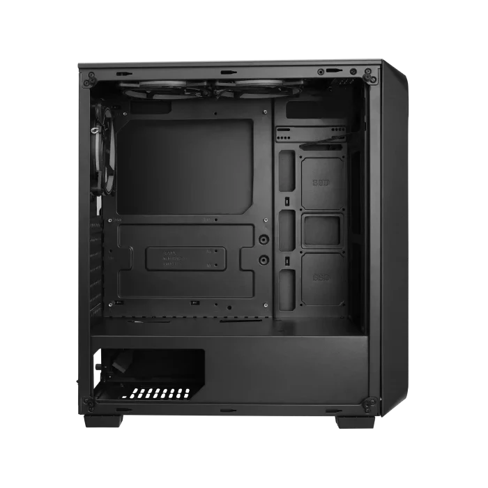 با توجه به اینکه کیس مورد بحث در میان انواع محصولات گیمینگ قرار میگیرد، در طراحی آن، 3 جایگاه فن در نظر گرفته شده است. فنها به عنوان سیستم خنک کننده در داخل این دستگاه، از آسیبهای حرارتی به قطعات جلوگیری میکنند. به همین دلیل تعداد و محل قرارگیری آنها، در فعالیت کیس تاثیر مستقیم میگذارد.