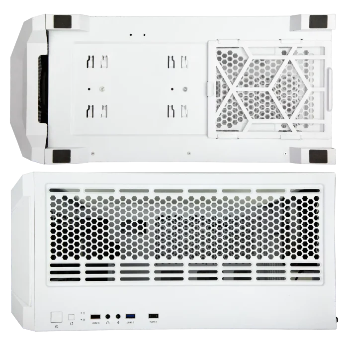 پنل بالایی از جنس ترمو پلاست است که به کاهش وزن کیس کمک میکند. توری های فلزی در این پنل نیز تهویه مناسب را از بالا تسهیل کرده است.یکی از پنلهای کناری از شیشه سکوریت حرارتی ساخته شده که نمای داخلی سیستم شما را به زیبایی به نمایش میگذارد. پنل کناری دیگر فلزی بوده و برای مدیریت بهتر کابل کشی در نظر گرفته شده است.