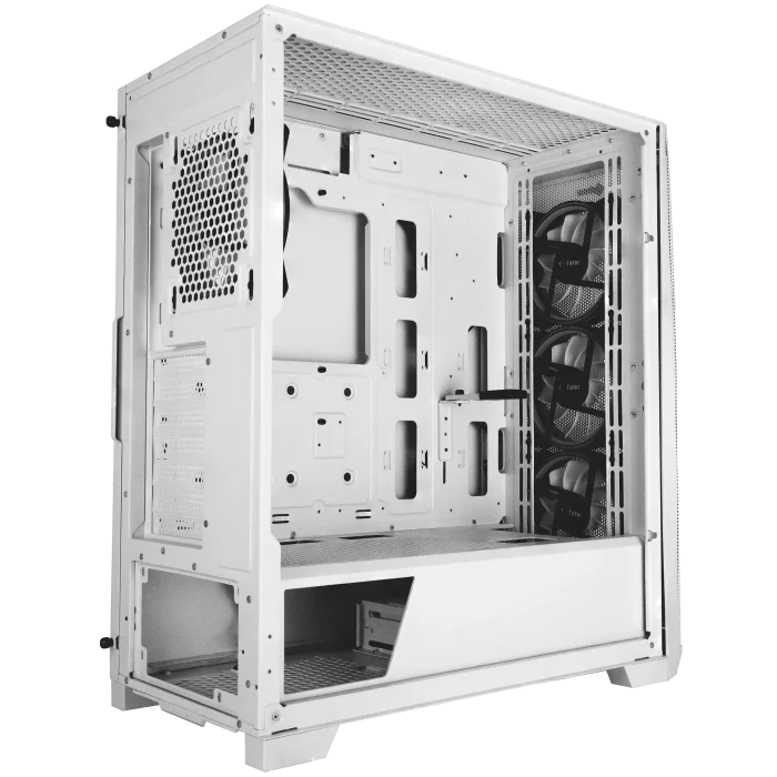 - فضای داخلی: فضای داخلی کیس FG-770W جادار بوده و امکان نصب آسان قطعات را فراهم میکند. مدیریت کابل کشی در این کیس به لطف وجود حفرههای مخصوص و همچنین فضای کافی پشت سینی مادربرد، به خوبی انجام میپذیرد.