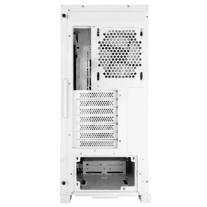 - پنل پشتی: در پنل پشتی کیس، 7 اسلات توسعه PCI، یک حفره برای نصب فن 120 میلیمتری و جایگاه خروجی کابل برق نیز قرار گرفته است.
