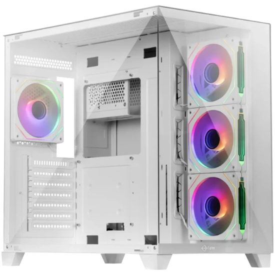 Fater FG-880W در کلاس Mid Tower و با رنگ کورهای تمام سفید تولید شده است. این رنگ علاوه بر زیبایی، خاصیت آنتیاستاتیک دارد و مقاومت بالایی در برابر خط و خش ارائه میدهد. بدنه کیس از فولاد ضد زنگ SPCC/SECC ساخته شده و پنلهای جلو و چپ از شیشه حرارتدیده هستند. این طراحی علاوه بر جلوه مدرن، نصب قطعات و مدیریت کابلها را آسان میکند.