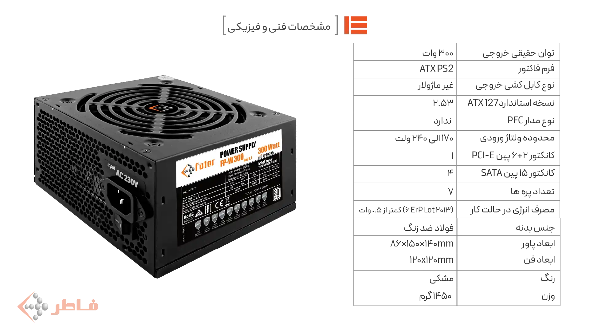 ویژگیهای تخصصی پاور کامپیوتر Fater FP-W300