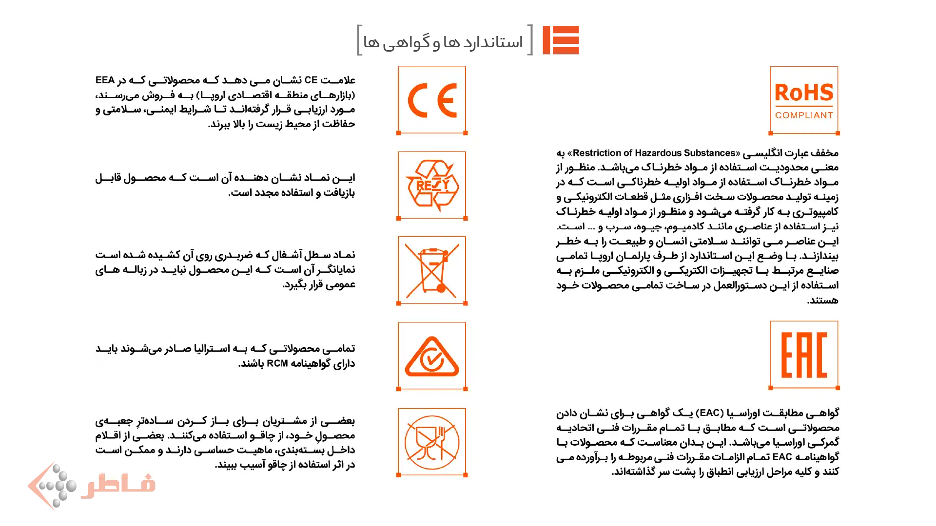 برای آسودگی خاطر، واحد منبع تغذیه ما با قوانین سختگیرانه ایمنی و محیط زیست بین المللی مطابقت دارد. این محصول دارای گواهینامه CE برای مطابقت با اروپا، گواهینامه CCC برای چین، گواهینامه VDE برای آلمان و نشان RCM برای مطابقت در استرالیا و نیوزلند است. علاوه بر این، استانداردهای سختگیرانه ICC کره جنوبی را رعایت میکند و دارای گواهینامه EAC برای اتحادیه اقتصادی اوراسیا میباشد. در نهایت، PSU با استاندارد RoHS مطابقت دارد و برای محصولی سازگار با محیط زیست، استفاده از مواد خطرناک خاص را محدود میکند.