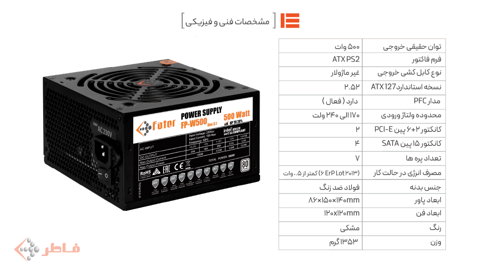 ویژگی های تخصصی پاور کامپیوتر Fater FP-W500