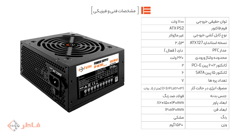 ویژگیهای تخصصی پاور کامپیوتر Fater FP-W700