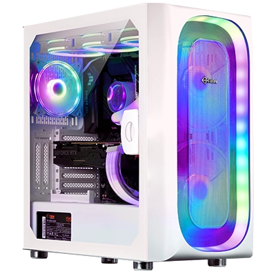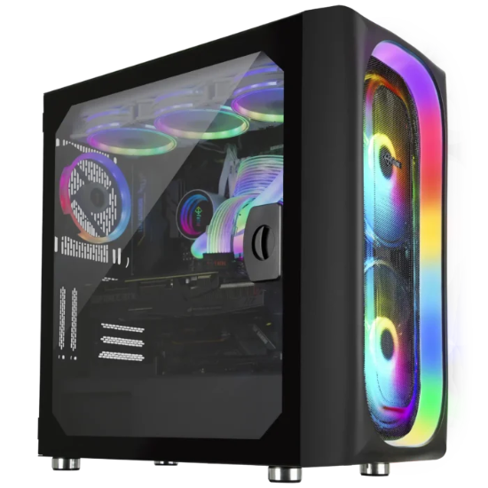 طراحی کیس مدرن و مینیمال با توجه به خنکسازی بهینه و پنل شیشهای جانبی است که امکان مشاهده نورپردازی RGB داخلی و اجزای سختافزاری را فراهم میکند. سیستم تهویه به شکلی تنظیم شده که دمای قطعات در بالاترین سطح کارایی حفظ شده و نویز کمتری تولید شود.