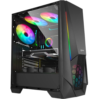 طراحی این سیستم با کیس مدرن سری اسپینل و پنل شیشهای کناری، نمایی جذاب و مینیمال ایجاد کرده است. نورپردازی RGB روی رم و فنهای کیس جلوهای حرفهای و شیک به اسمبل داده و فضای داخلی با چینش منظم کابلکشی بهگونهای طراحی شده که جریان هوا بهخوبی گردش کند. این طراحی، علاوه بر زیبایی، باعث افزایش طول عمر قطعات و بهبود کارایی خنککنندگی شده است.