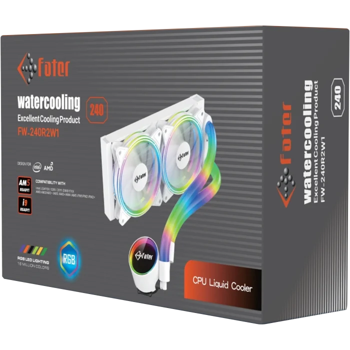 واتر کولینگ Fater FW-240R2W1 یک خنککننده آبی Close Loop است که رنگ آن تماماً سفید است. این خنک کننده به لطف طراحی و ساختاری که دارد، به خوبی می تواند حرارت پردازنده را با توان بالایی دفع کند.