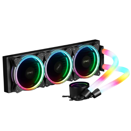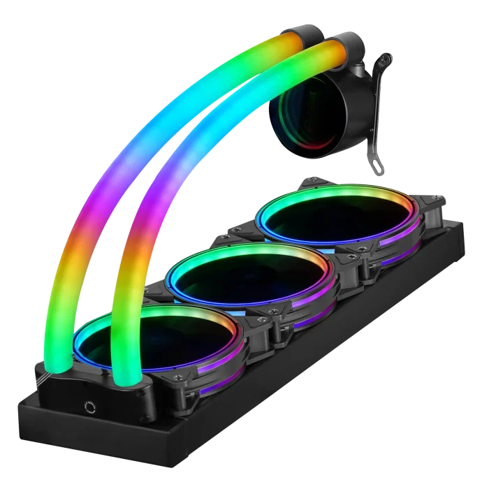 - این خنککننده دارای سه فن 120 میلیمتری RGB است که در بالای رادیاتور قرار دارند.