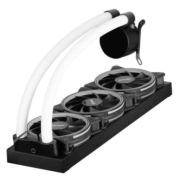 Fater FW-360R3B1، یک هیولای خنککنندهی مایع از نوع AIO (همهدریک) است که برای سرکوب گرمای پردازندههای غول پیکر طراحی شده است. این غولِ خنککننده، با اتکا به رادیاتور 360 میلیمتری و سه فن 120 میلیمتری ARGB، قادر به دفع حجم عظیمی از گرما است. قلب تپنده ی این محصول، پمپی قدرتمند و کم صدا است که به طور پیوسته، جریان خنککننده را در سرتاسر سیستم به گردش در میآورد.