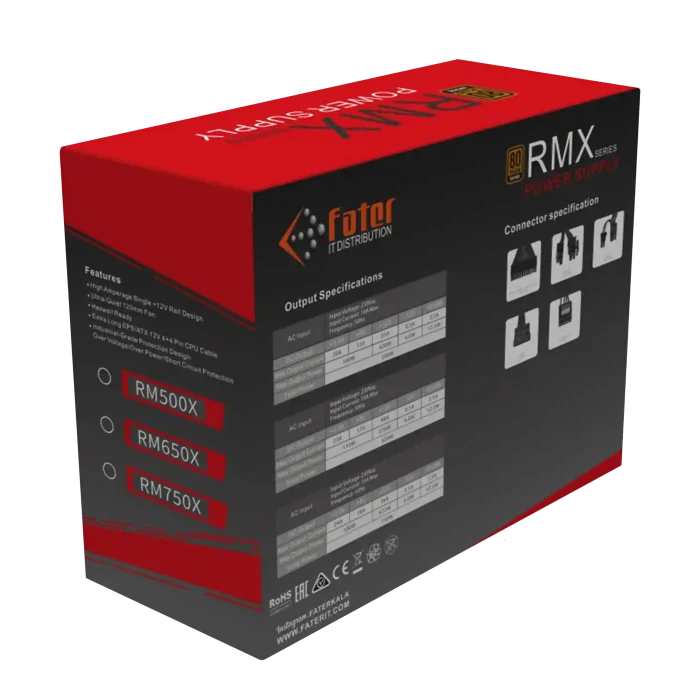 این پاور دارای گواهینامه 80+ Bronze است که نشاندهنده راندمان انرژی حداقل 80 درصد در بارهای مختلف است. وجود سیستم اصلاح ضریب توان فعال (Active PFC) باعث بهبود بهرهوری مصرف برق و کاهش تلفات انرژی شده و به تثبیت ولتاژ خروجی کمک میکند. پاور Fater RM750X همچنین دارای محافظتهای کامل الکتریکی شامل محافظت در برابر ولتاژ بالا و پایین، جریان اضافه، اتصال کوتاه و نوسانات برق است که از آسیب به قطعات سختافزاری جلوگیری میکند.